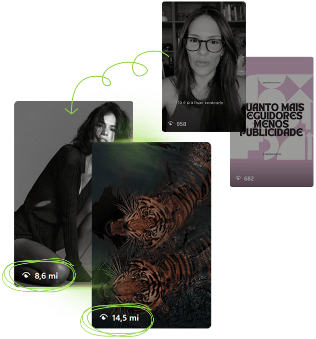 Você vai dominar estruturas específicas para Reels, Stories, TikToks, carrosséis e vídeos longos com exemplos prontos e templates aplicáveis.